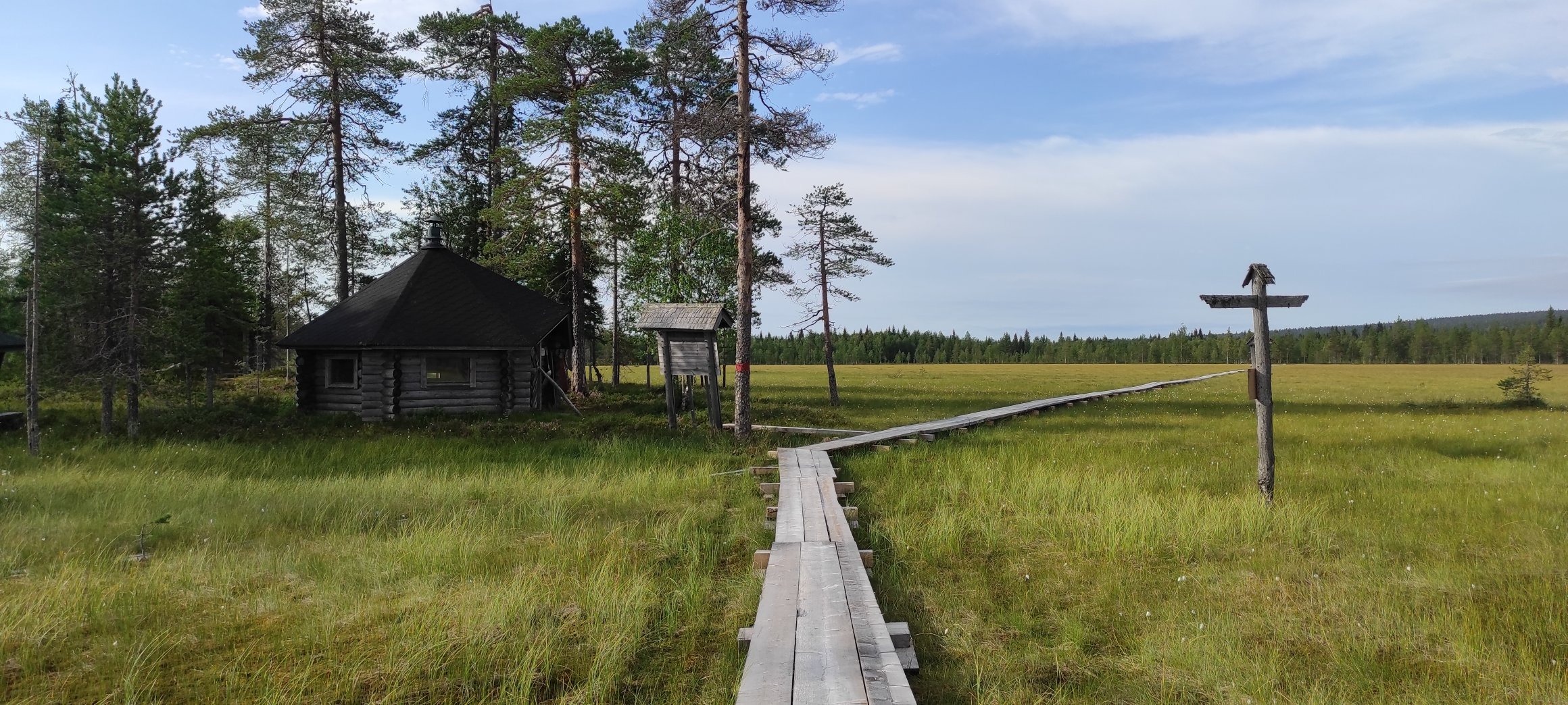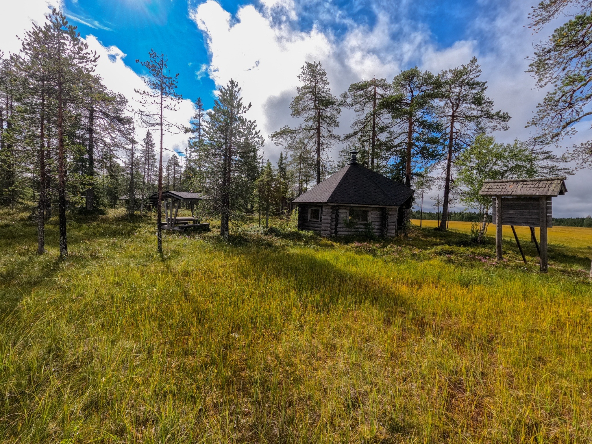 Joutensuo hut is located in the middle of a large marsh and is on a biking, hiking and ski trail. It is a great campfire spot.