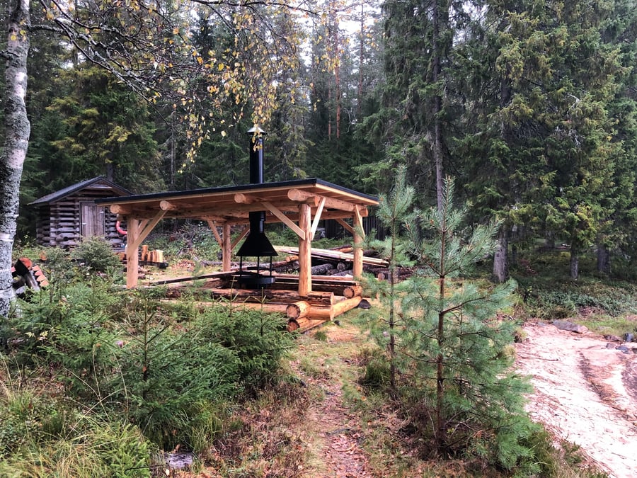A pretty good place to land if you are kayaking out to this island (Rehjansaari) located in Nuasjärvi. There is a very small sandy beach but it does the job. Plus, there is a very nice & new covered outdoor grill for cooking. (grillipaikka / grillipaikat). You can get wood from a cottage called Kuusela and there WC behind some of the old gray cottages on the island. You can camp free on the island (every persons right in Finland) but the company that manages these huts also rents out cabins, kayaks, SUP boards, and other services in the area: https://luonnollisesti.fi/