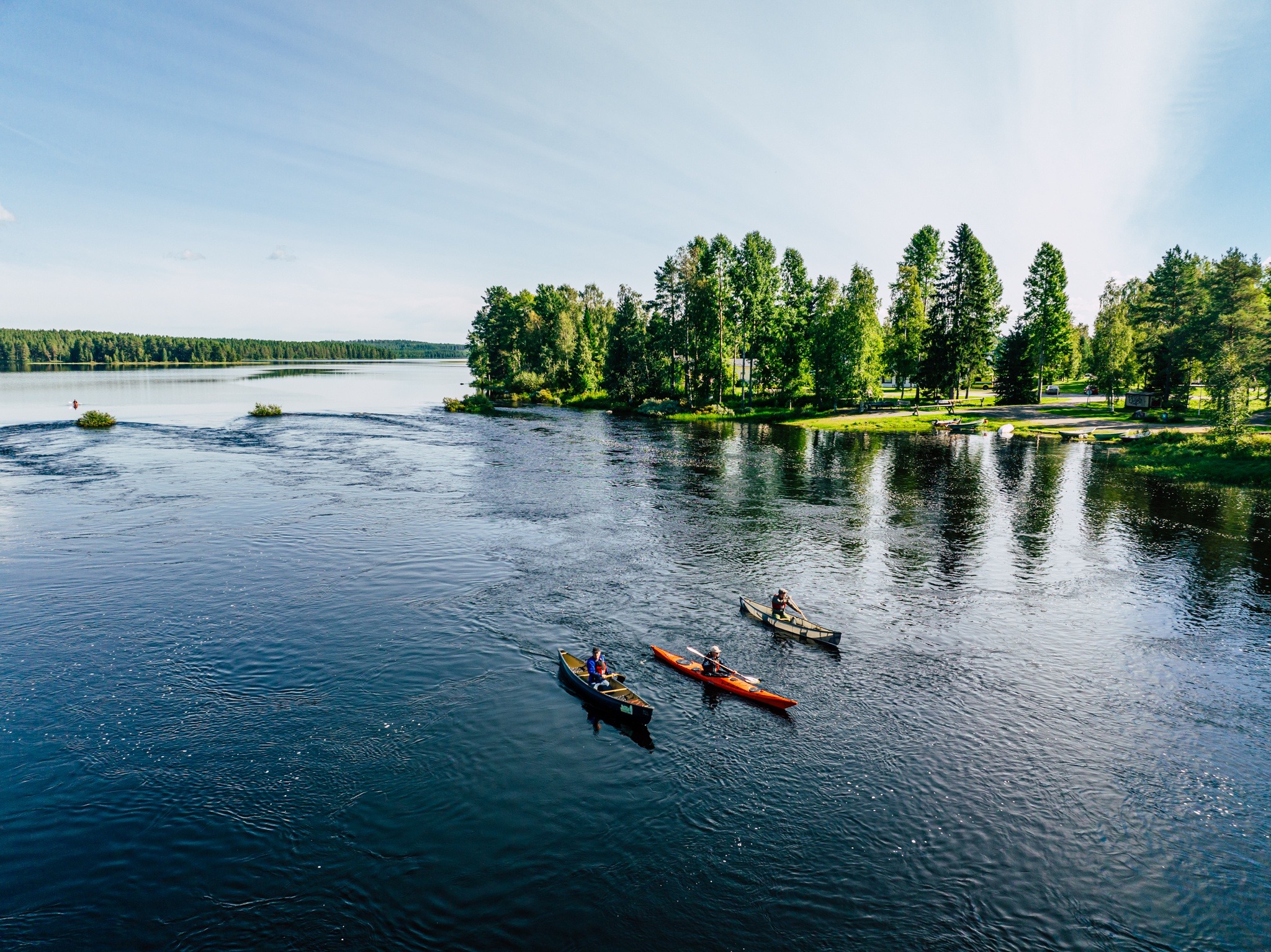 Pajakkasuvanto kayaking pier is right before the Pajakkakoski rapids. It is a pier build to help kayakers get in and out of their kayaks easily. The Pajakkakoski canoeing pier is not a very good starting point, as there is no road next to it, only a cycle path. It is better to get to the water a little further from Maakunnanranta . You can swim from the pier, but it is not suitable for small children. Please note that there are currents on the shore.