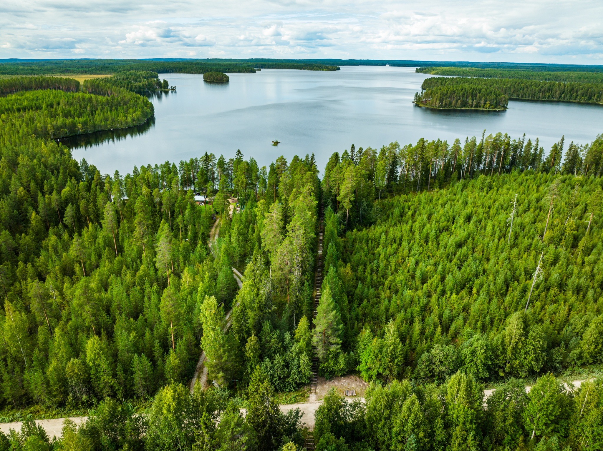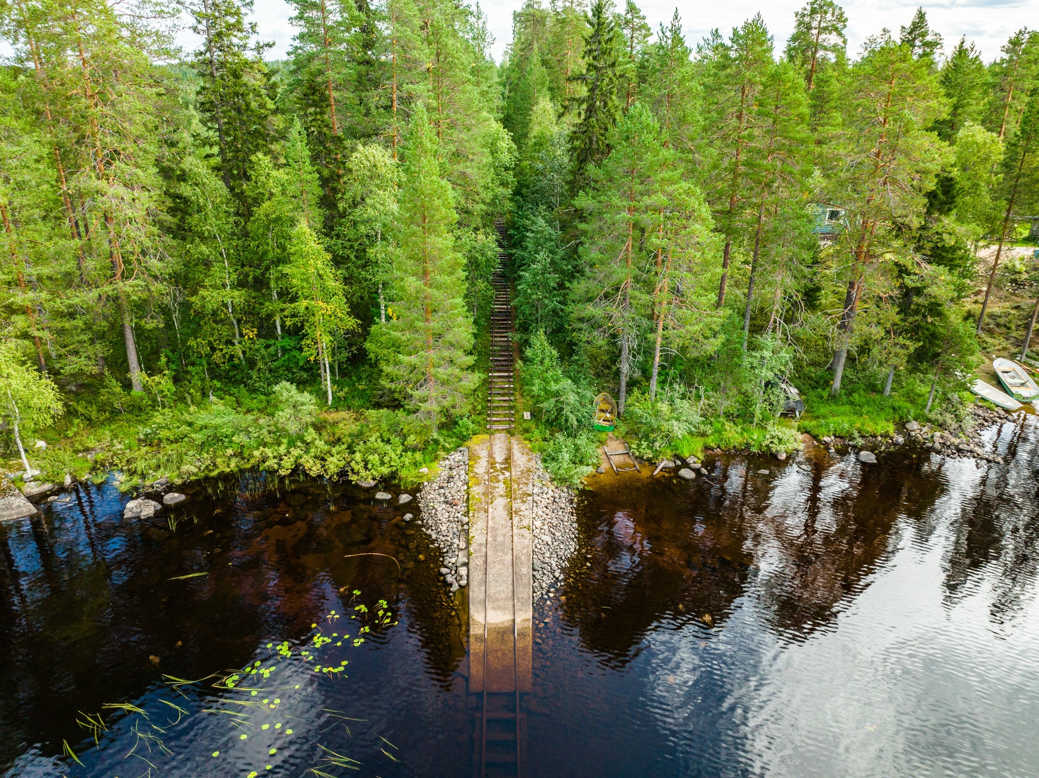 If you are kayking the Kainuu Tervareit and want an alternative route, this is a place you could launch or a place where you can transport your kayaks. The Huuhkajankannas towpath was originally built 100 years ago when tar was transported by row boats to Oulu. The length of the track is 600 meters. The easternmost and wilder branch of the Kainuu Tervareit water hiking trail leads from Iivantiirajärvi to Juttuajärvi. A towpath has been built from its southernmost point, Huuhkajalahti, to Lentua. The Huuhkajankannas towpath from Juttua to Lentua creates a nice alternative route to the Kainuu Tervareitiu. Lentua leads to Huuhkajalampi and further to the waters of Lentua. The eastern side of Lentua is nicely archipelagoed, which protects the kayaker from stronger winds. The landscapes are more wilderness than the western route. A rail-mounted trailer makes it easier to move kayaking equipment or a light rowing boat from one lake to another. The equipment can be moved conveniently and relatively effortlessly on a powered trailer.