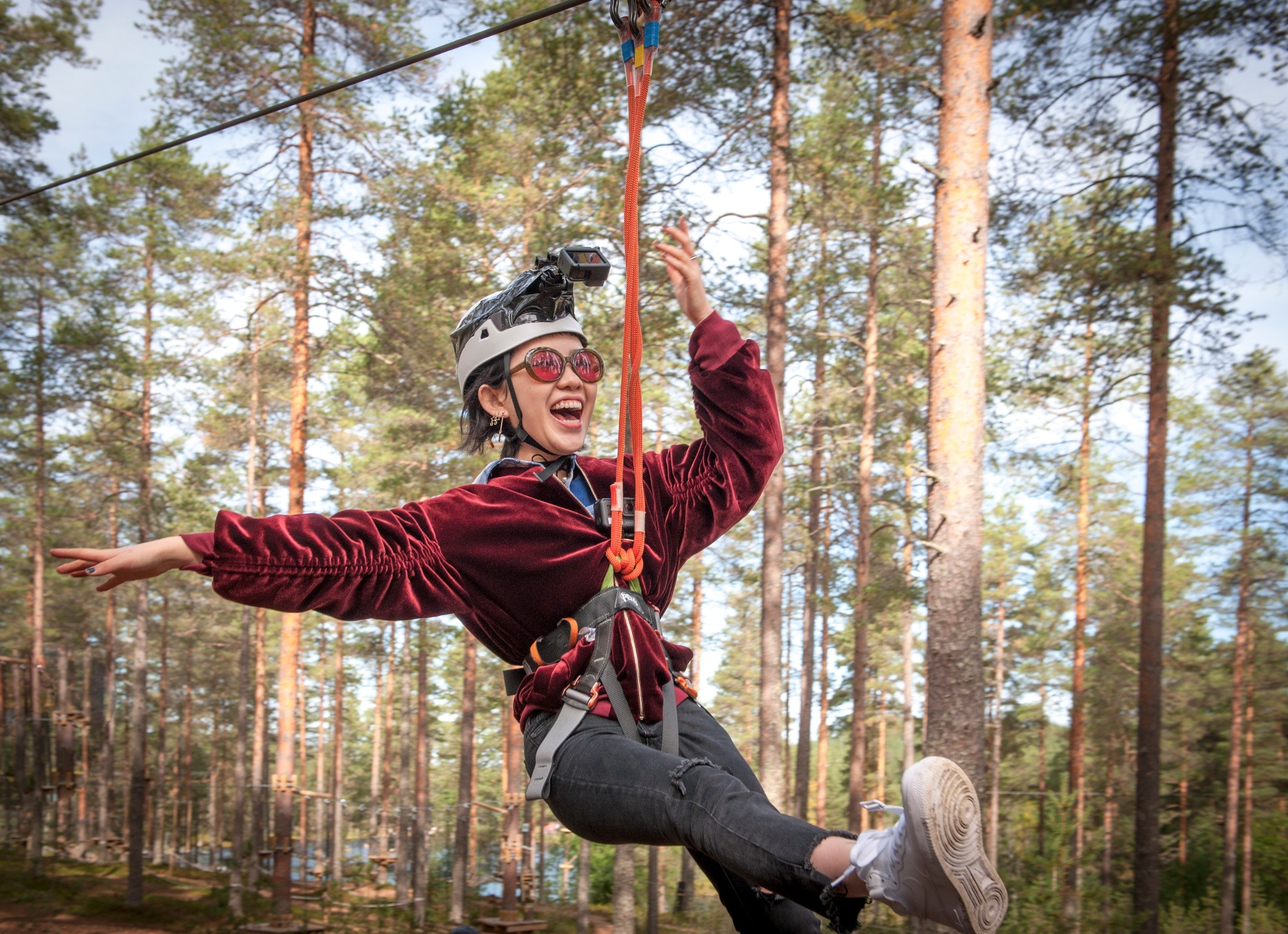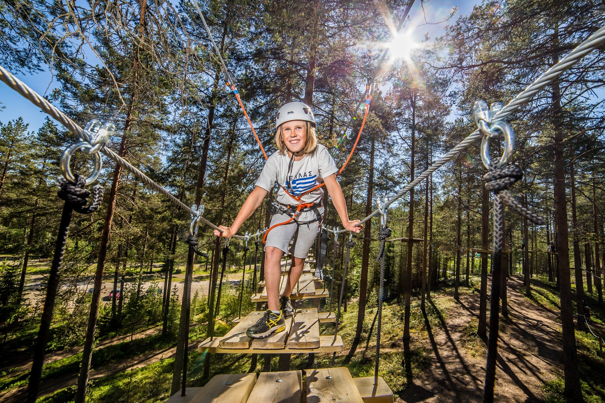 There are 9 long adventure courses in the Vuokatti Adventure Park. The park is color coded based on the difficulty. There is a zipline / free fall descent. You can come as an adult, but there is also a separate section for children. Read more about the <a href="https://vuokatinseikkailupuisto.com/radat/">different tracks here.</a>. The adventure park is located in the pine forest area between the Vuokatti Sports Institute and the Vuokatti slopes.