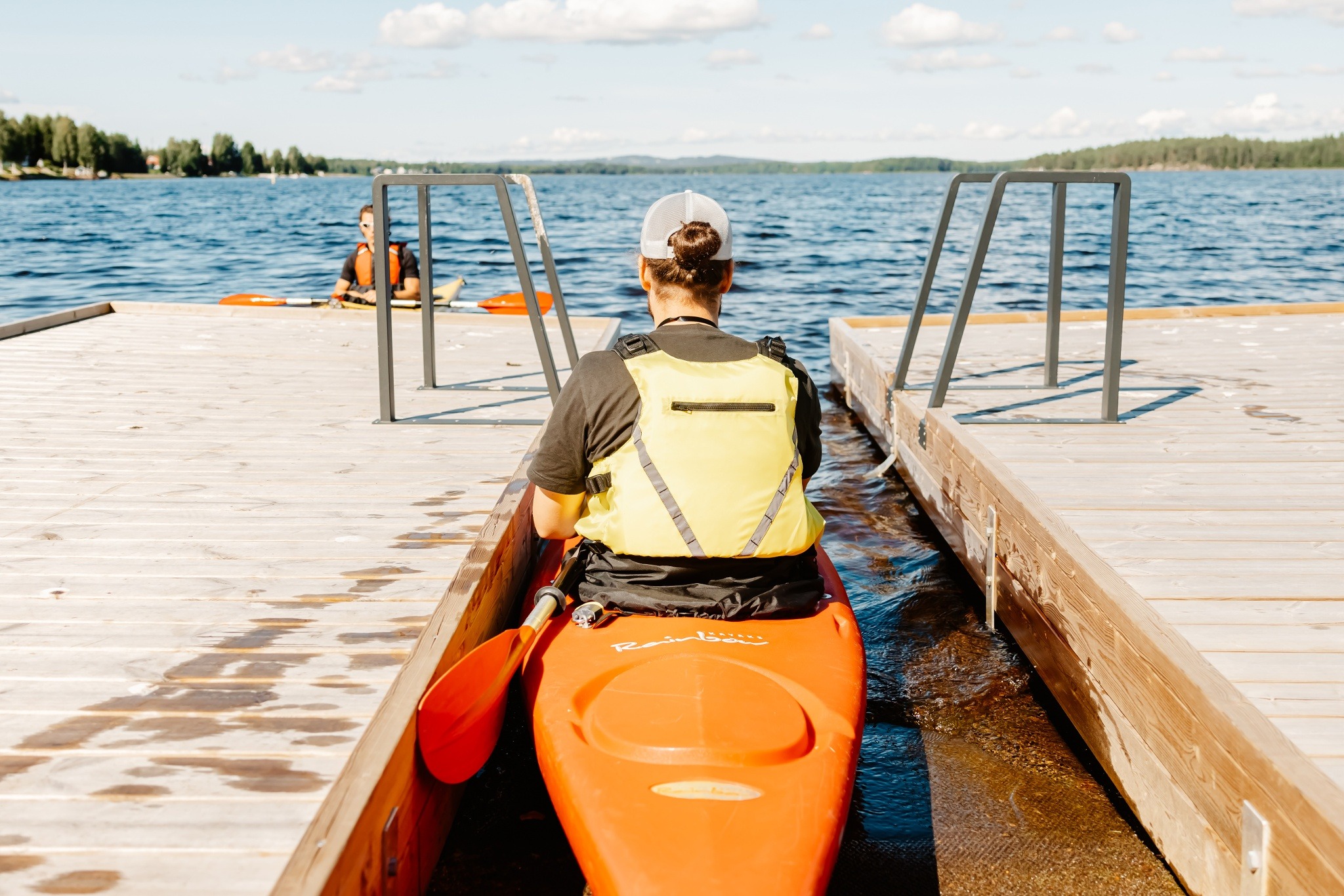 An accessible kayaking pier located in Sotkamo marina on Lake Pirttijärvi.