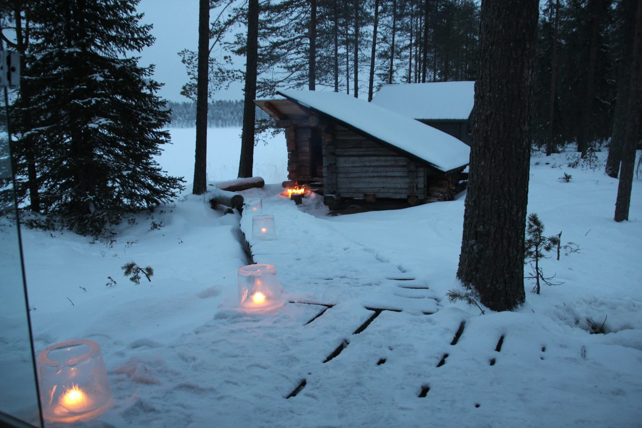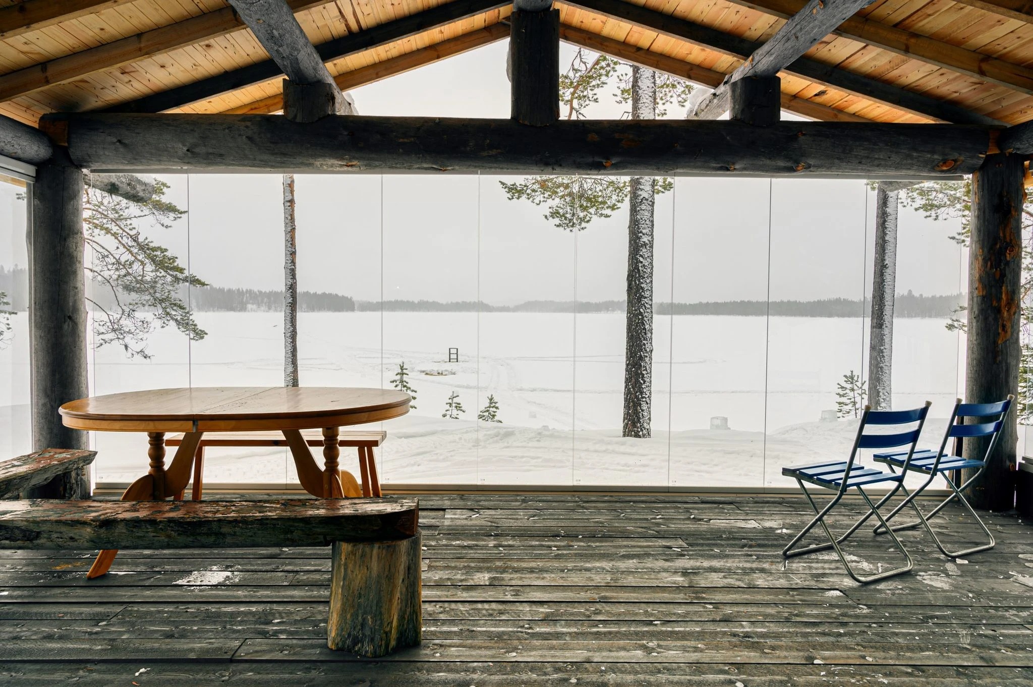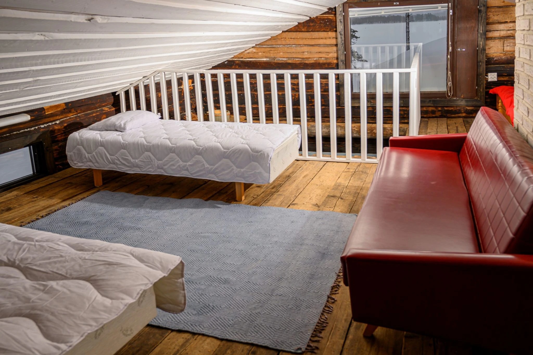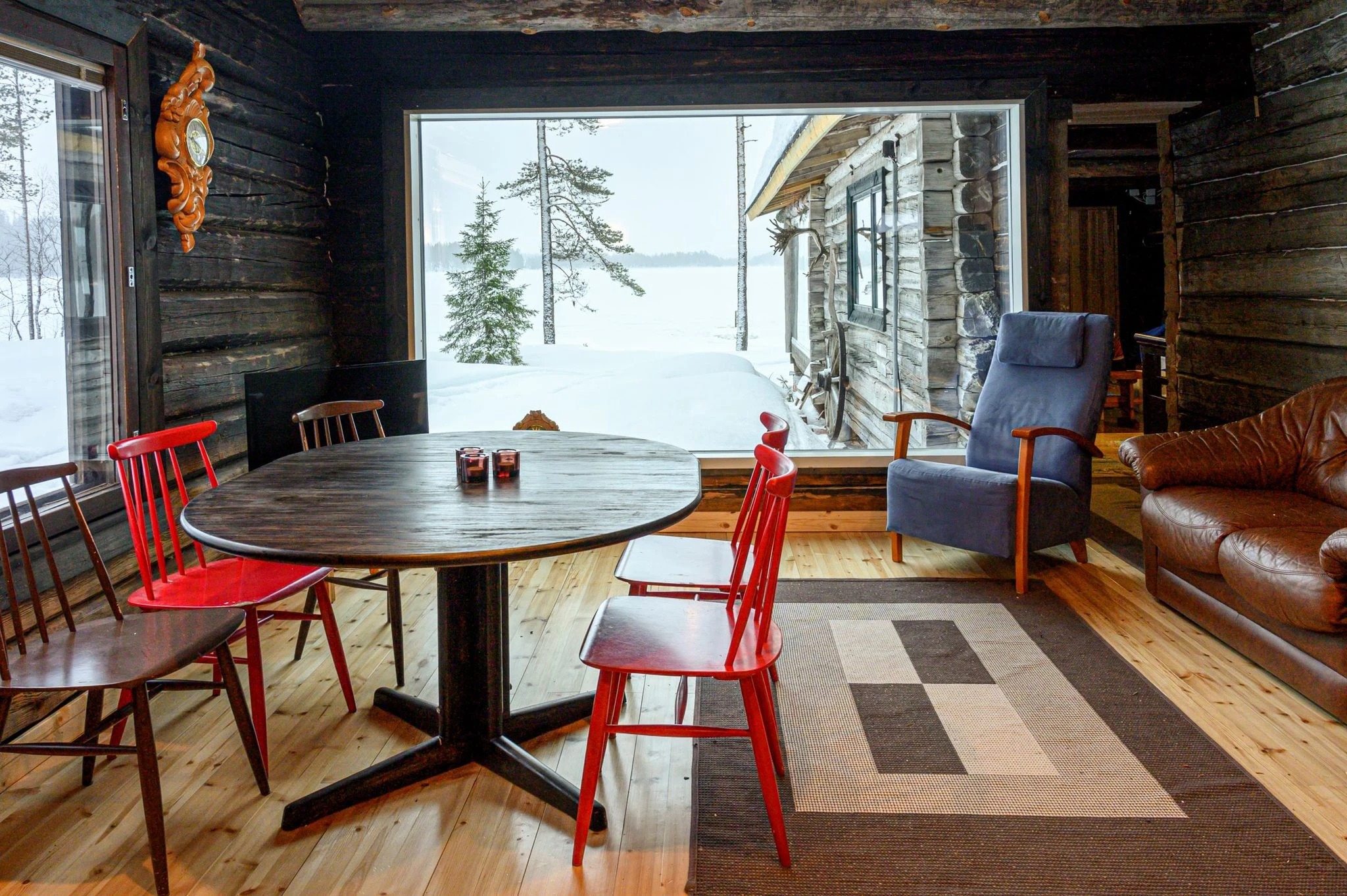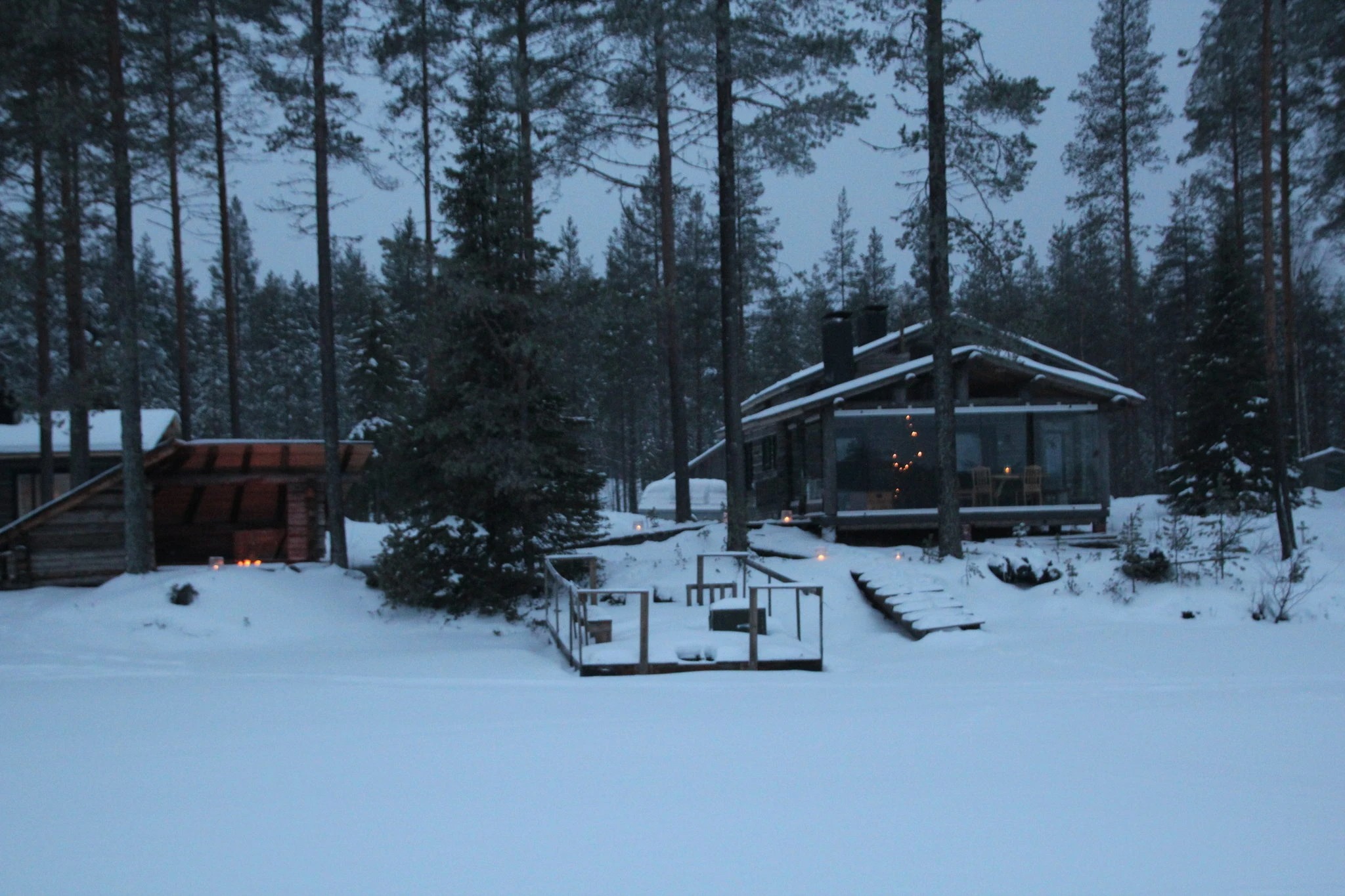 Riihelä is a rental cabin near Hossa National Park by a private company called Kainuu Nature Tours. It is on the shores of clear-water Lake Joukojärvi. There are several good trails nearby. In the summer there is the bike trail called "Sininen saavutus" and the kayaking trail called "Peranka - Hossa vesiretkeilyreitti." And in the winter teh ski trail "Lounatvaaran Talvilenkki Latu." The company also offers rental equipment and adventure tours like bear watching.