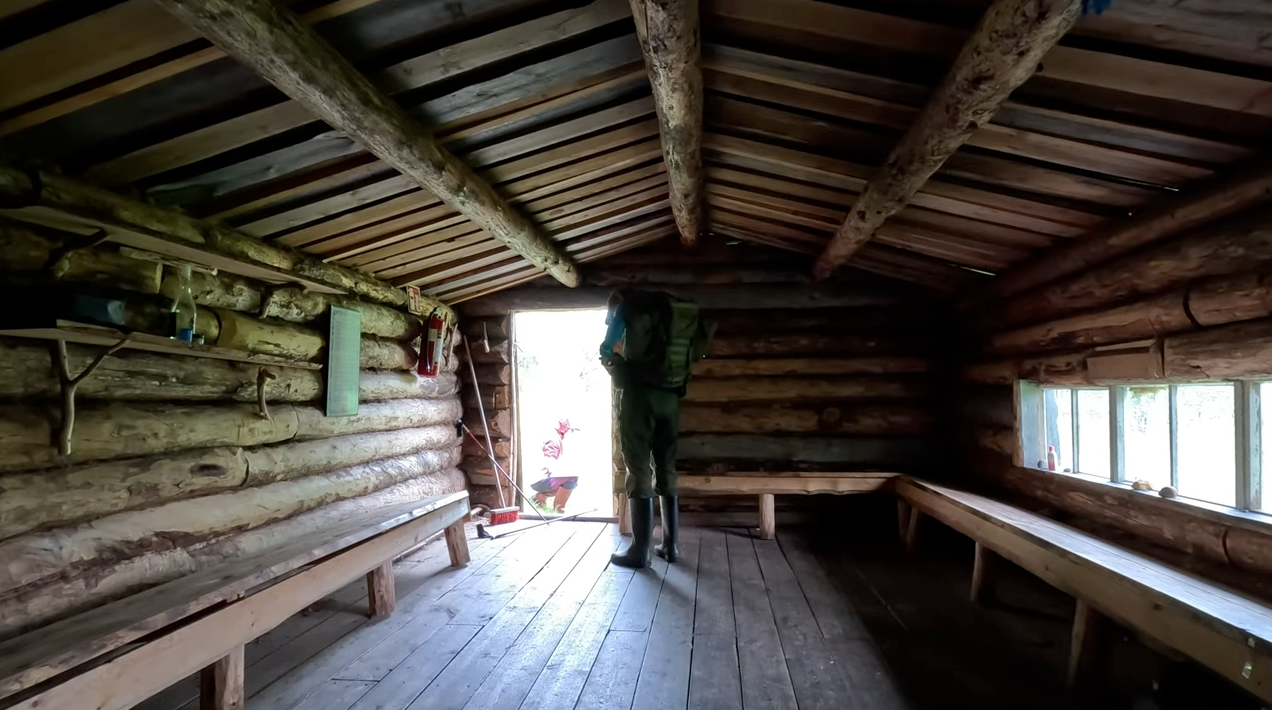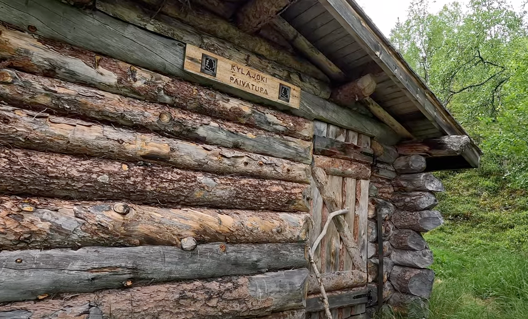 Kyläjoki päivä tupa is shown at 8 minutes on the video. It is a free day hit next to Ivalo River.