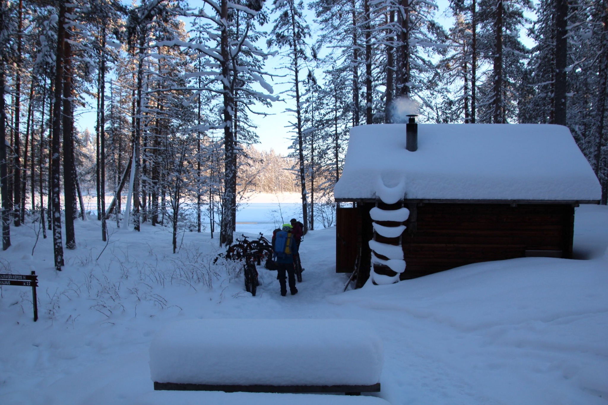 Hossan Kansallispuitossa Ala-Valkeisen rannalla autiotupa. Ala-Valkeinen ia a wilderness hut on the northern side of Lake Ala-Valkeinen. You can get to this trail in both the summer & winter. In the summer you can follow the Kokalmus hiking trail & mountain biking trail. And in the winter you can ski there on the Jatkonvaara trail.