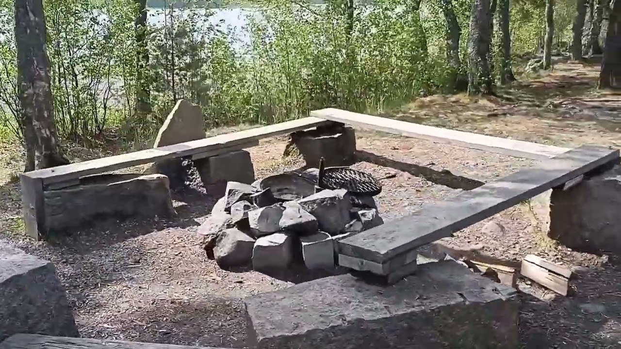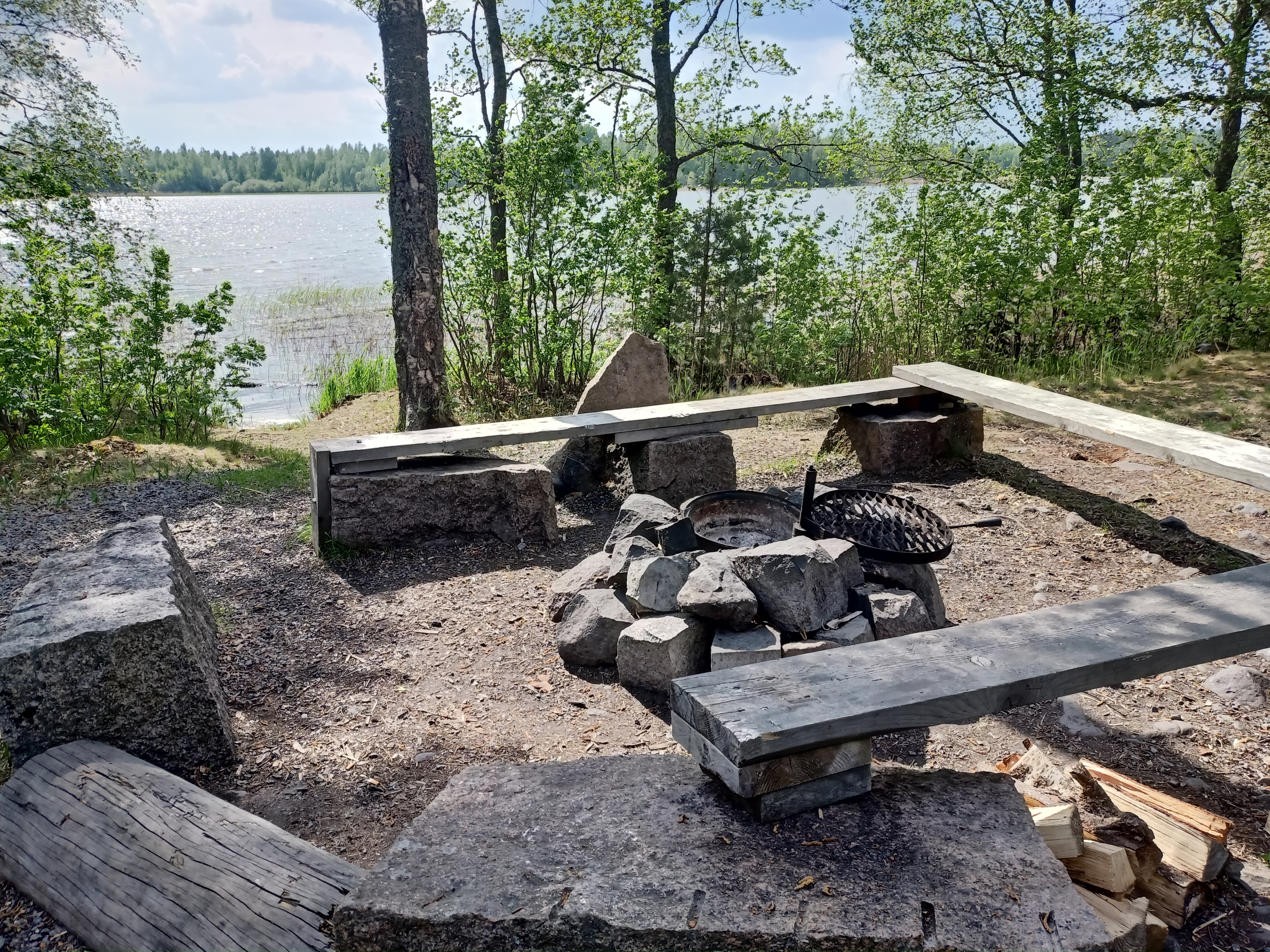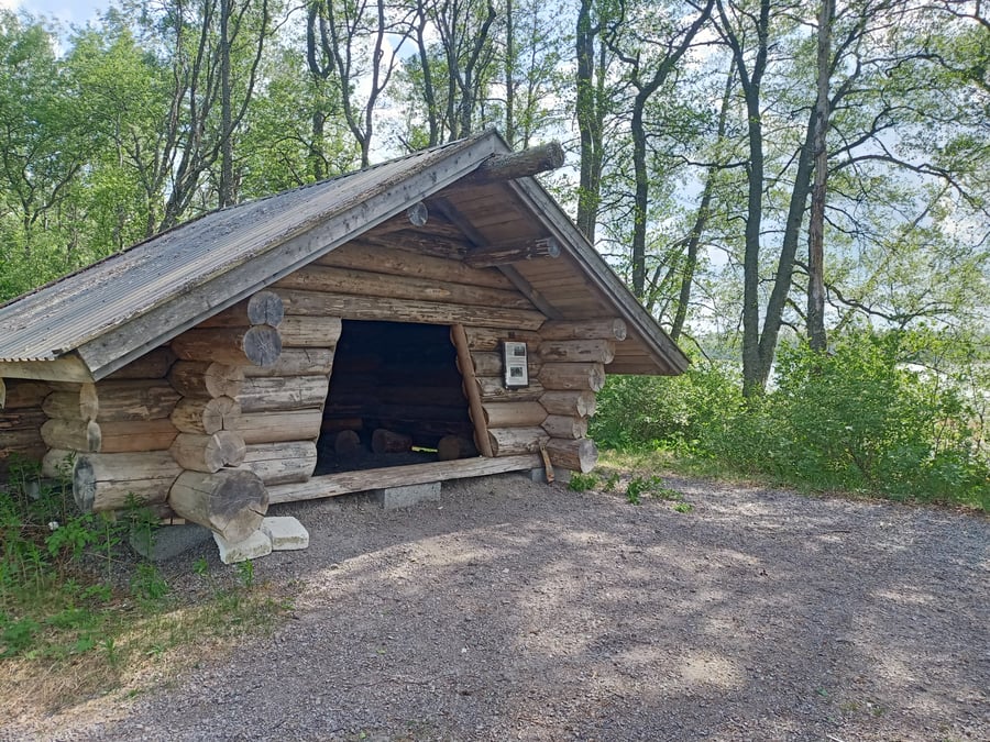 Lean to and campfire site. This hut is at the end of a much longer hiking trail (Terisjärven luontopolku). Even though The beach is busy, not many down here. Pretty isolated spot next to the lake