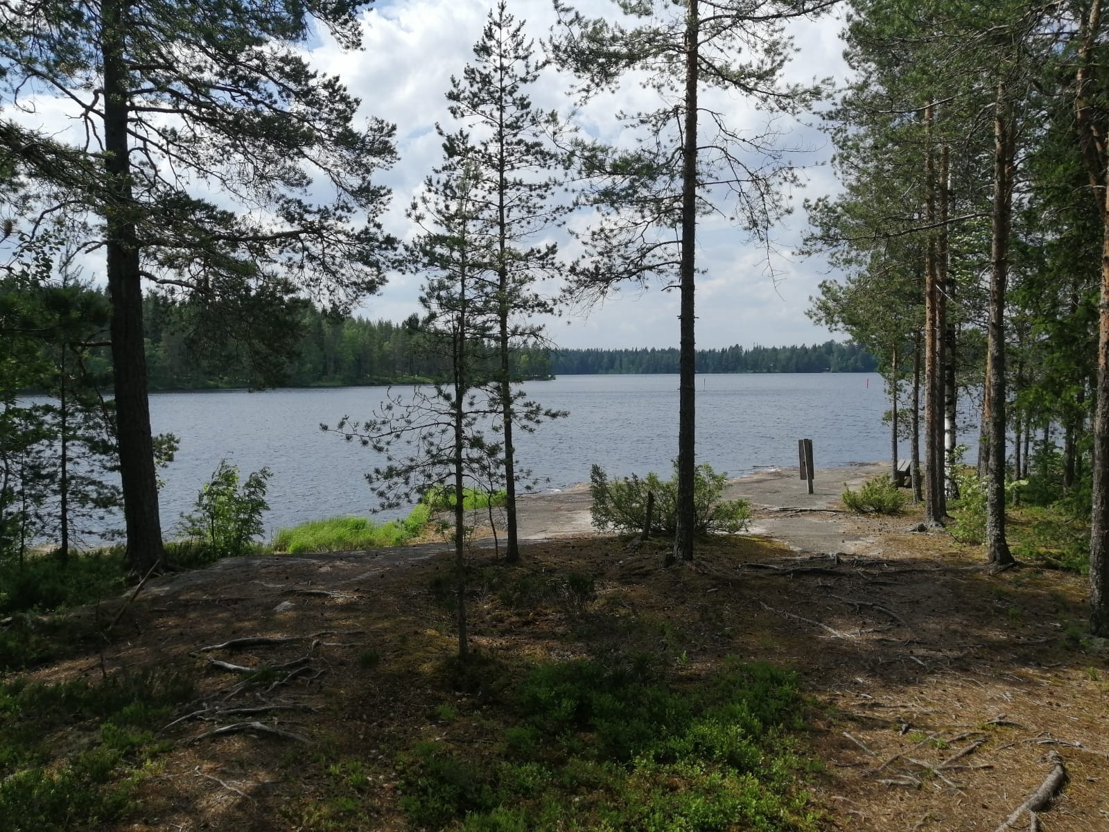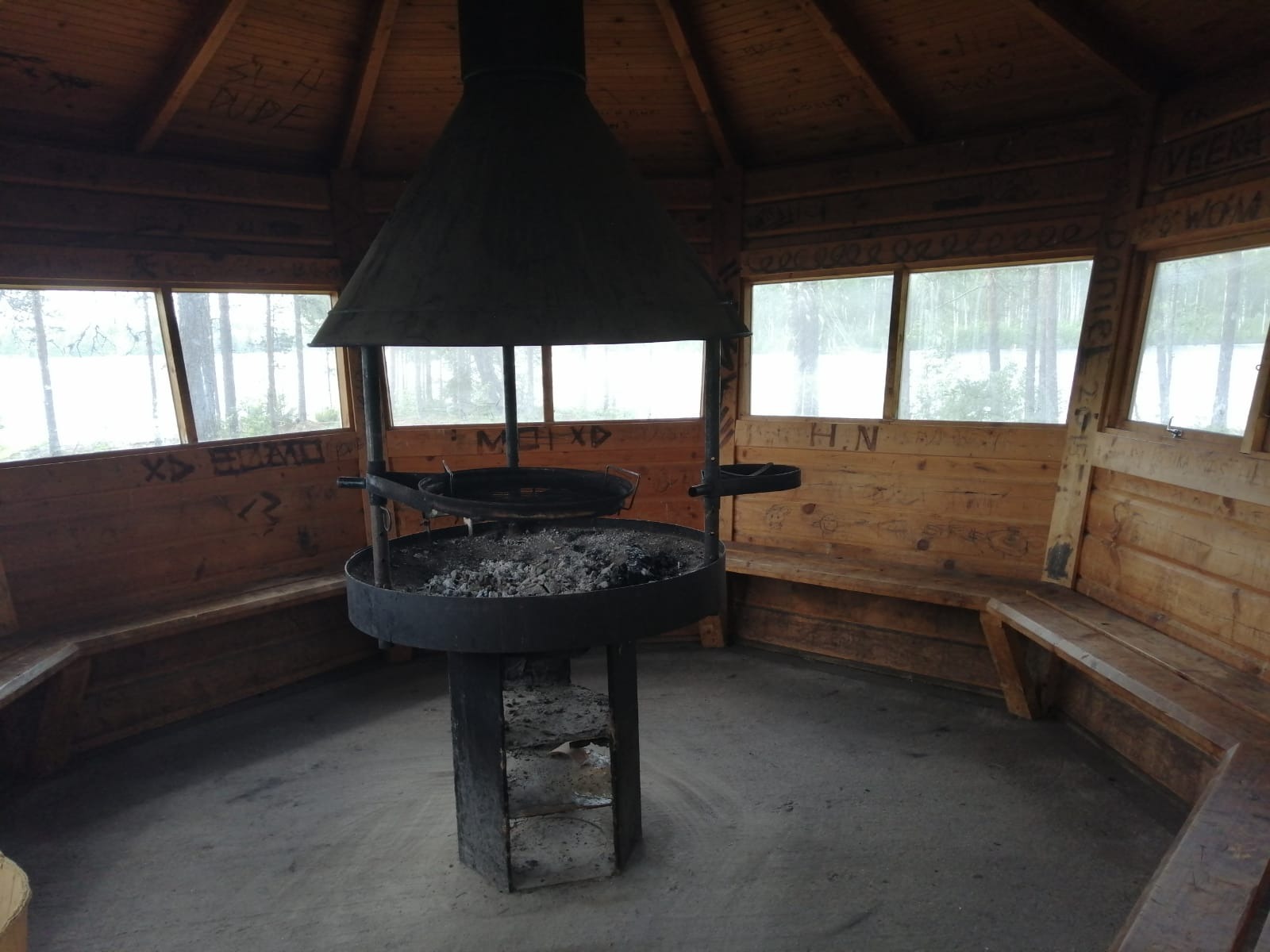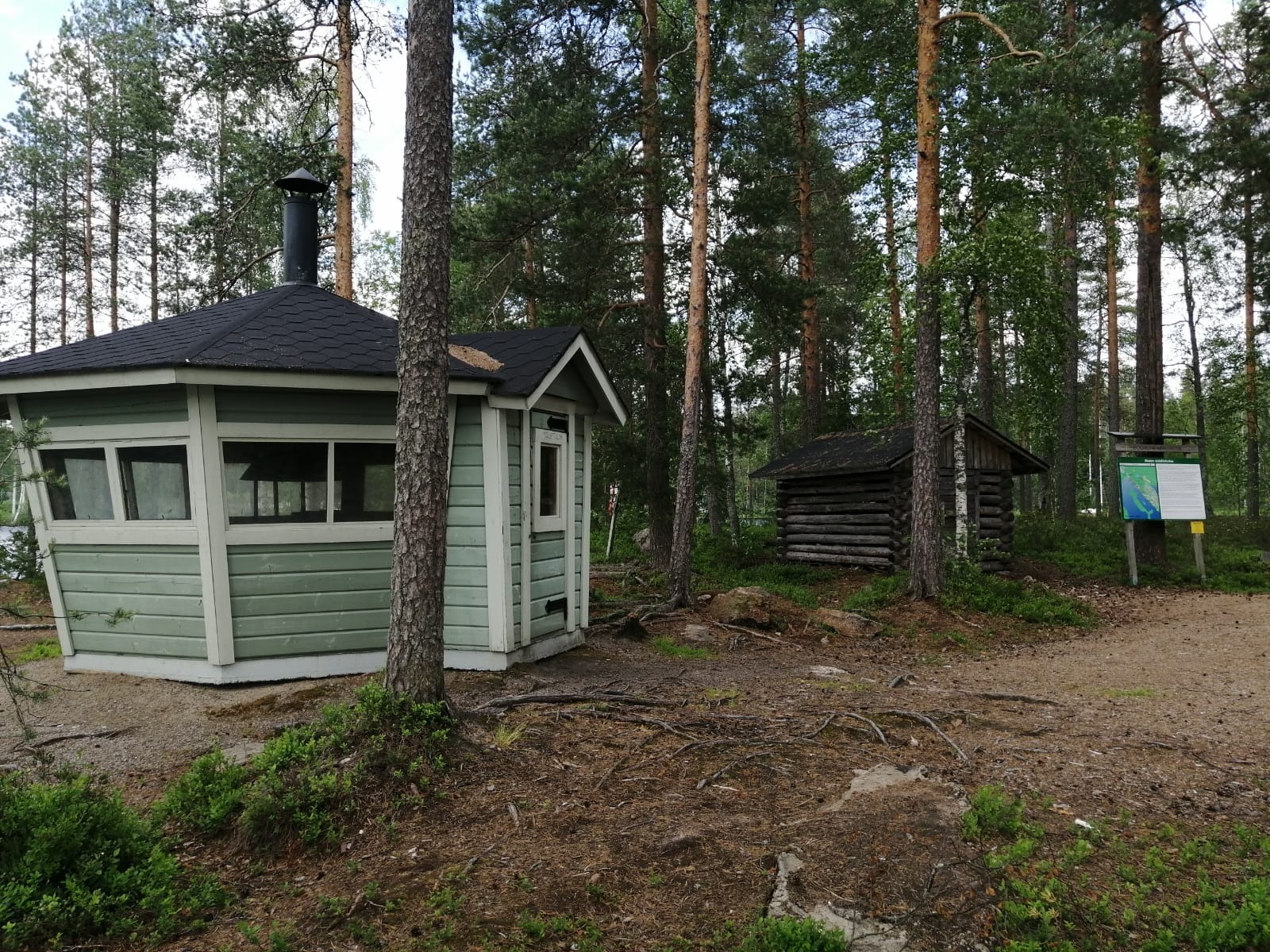 Roomuniemen kota is a scenic hut on Lake Ähtärinjärvi. Despite bad weather, visitors can enjoy the hut's beauty because of the enclosed windows, sunbathe on nearby rocks, and swim in the summer.