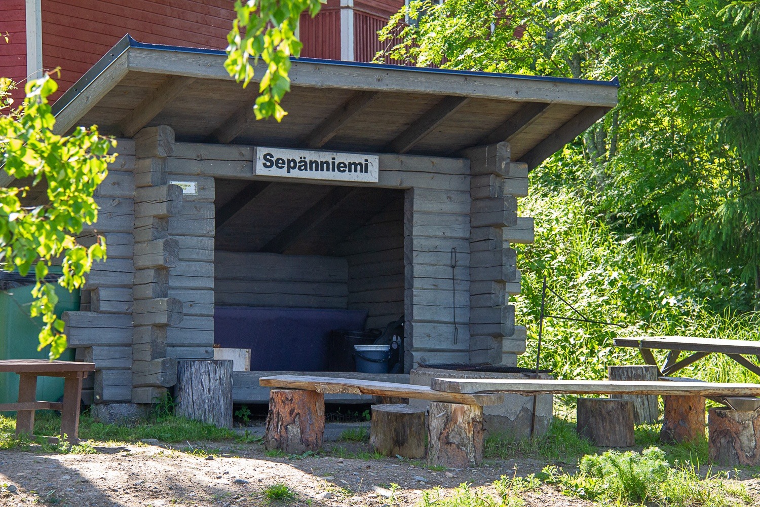 This is an open hut that has a grill that is available for anyone to use. It is next to Sepänniemi uimaranta (a public beach). It is also next to a bunch of cabins that can be rented so it can be very busy.