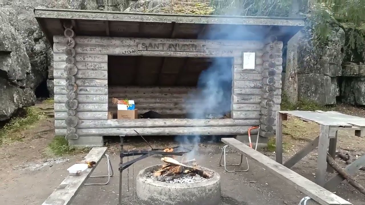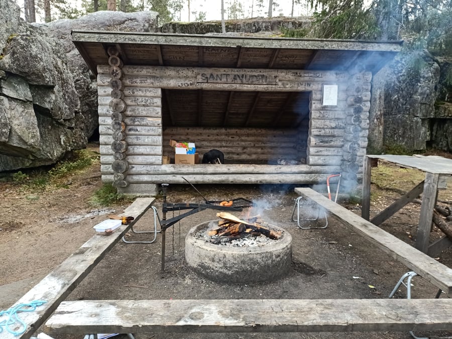 Santavuoren laavu is located on the Ilkan Polku hiking trail, which is about 30 - 40 km. You can also just drive up like 500 m, there is a parking area, and walk down to the laavu.