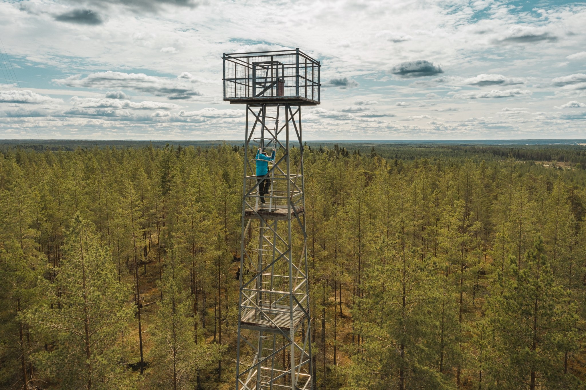 The Rumavuori Observation Tower, built in 2005 in the village of Mäyry, Kuortane, is a 20-meter-high metal structure offering magnificent views of the surrounding lakes and forests.