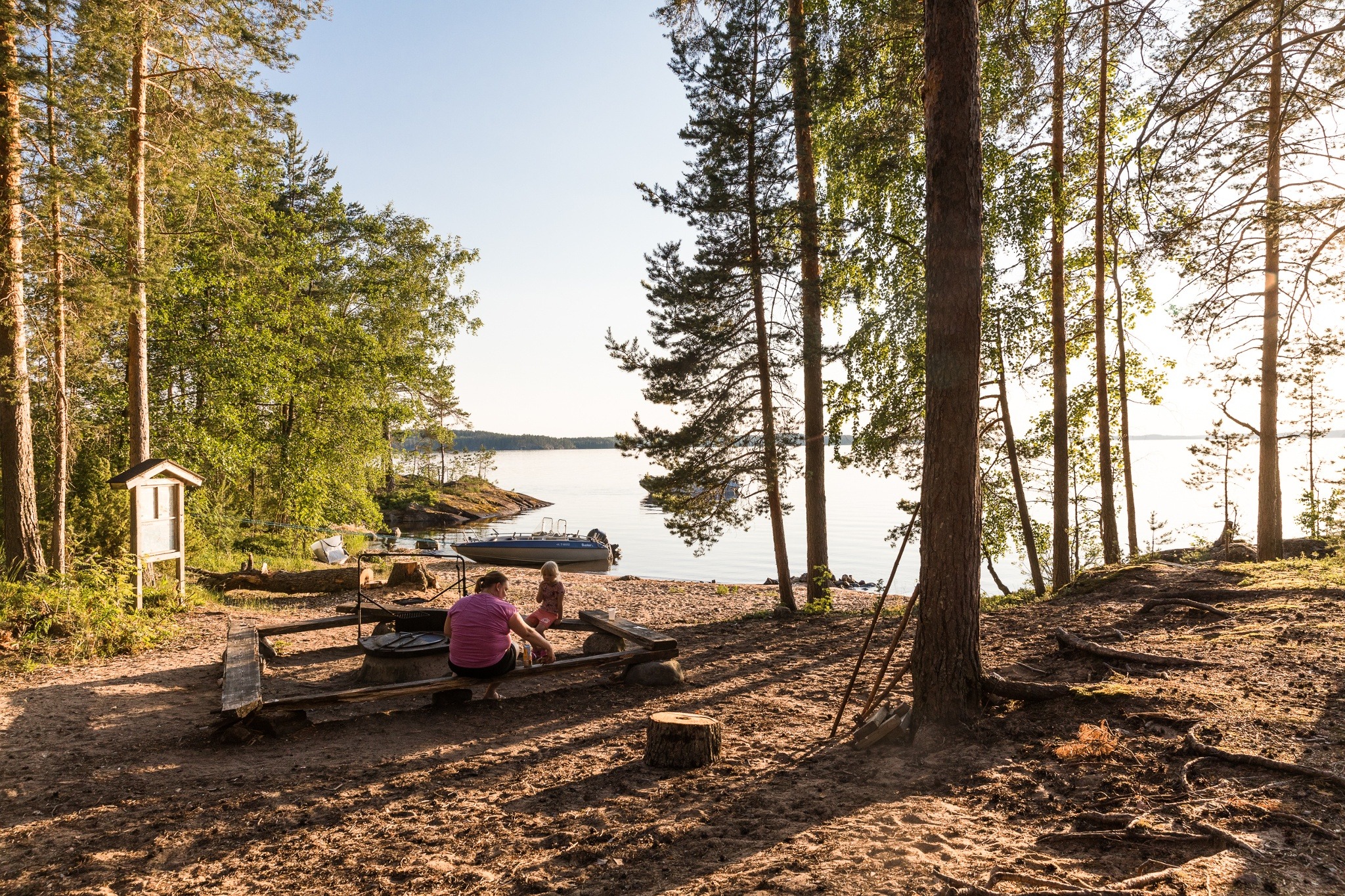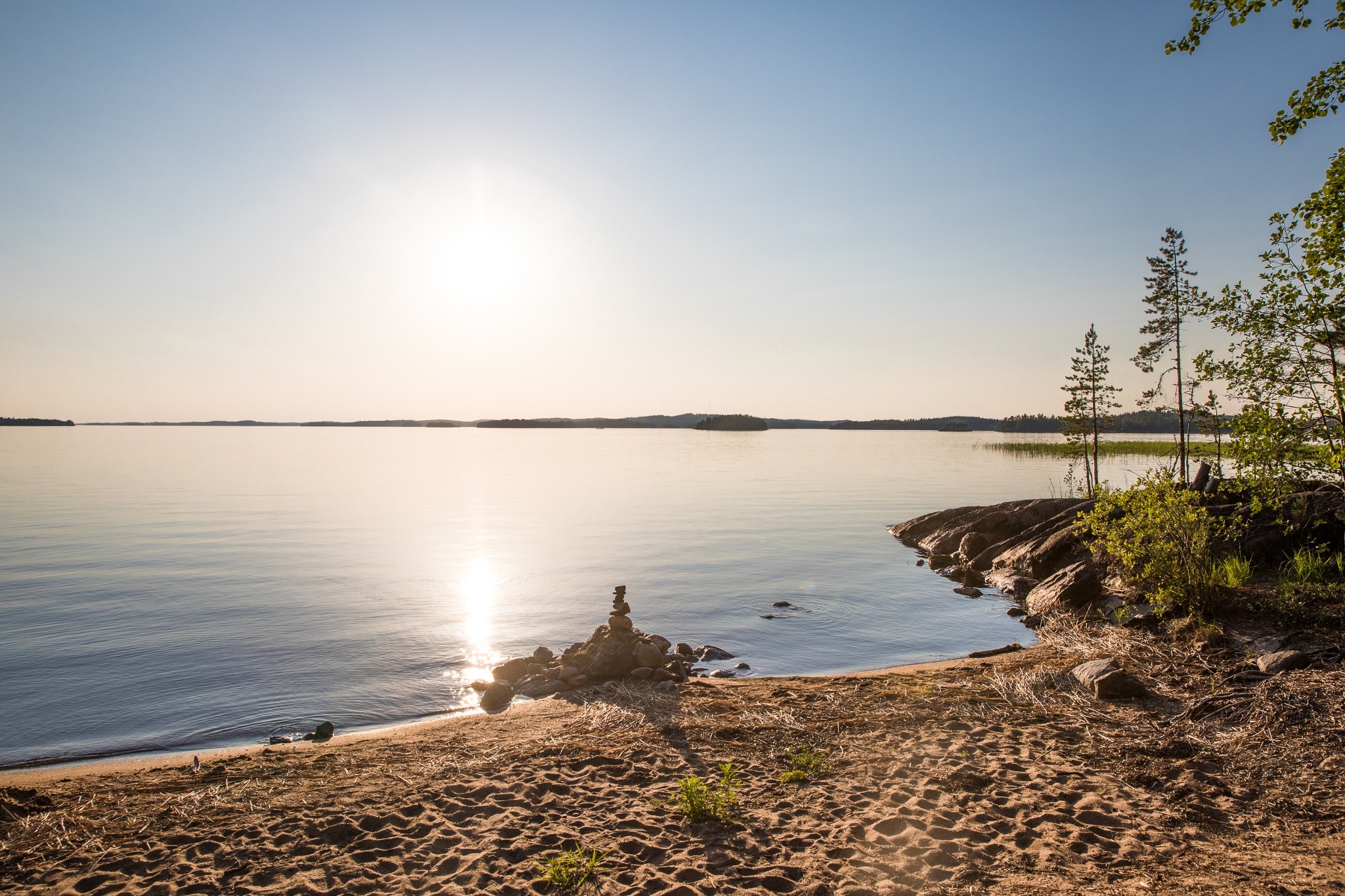 A sandy beach on the island of Pihlajavesi. You can camp overnight on the island.