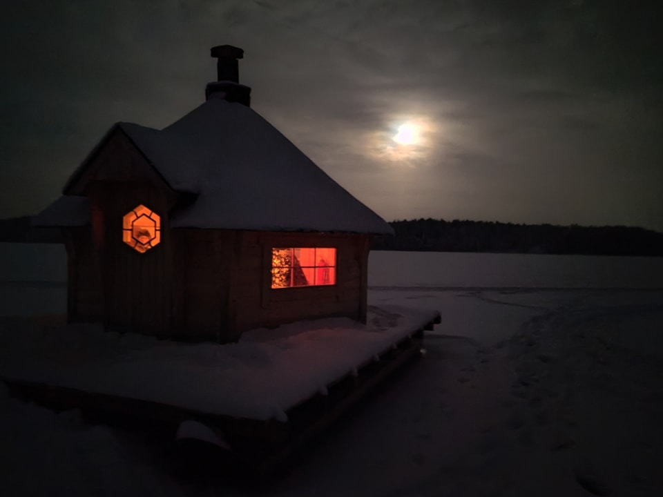 There is a hut you can rent between the ice walking route from Oravi and Linnansaari.