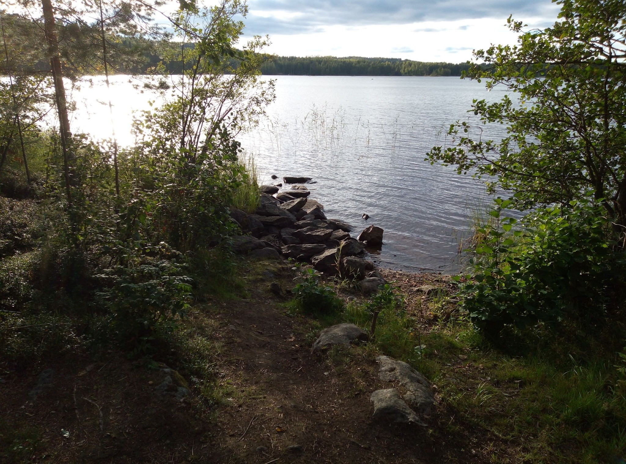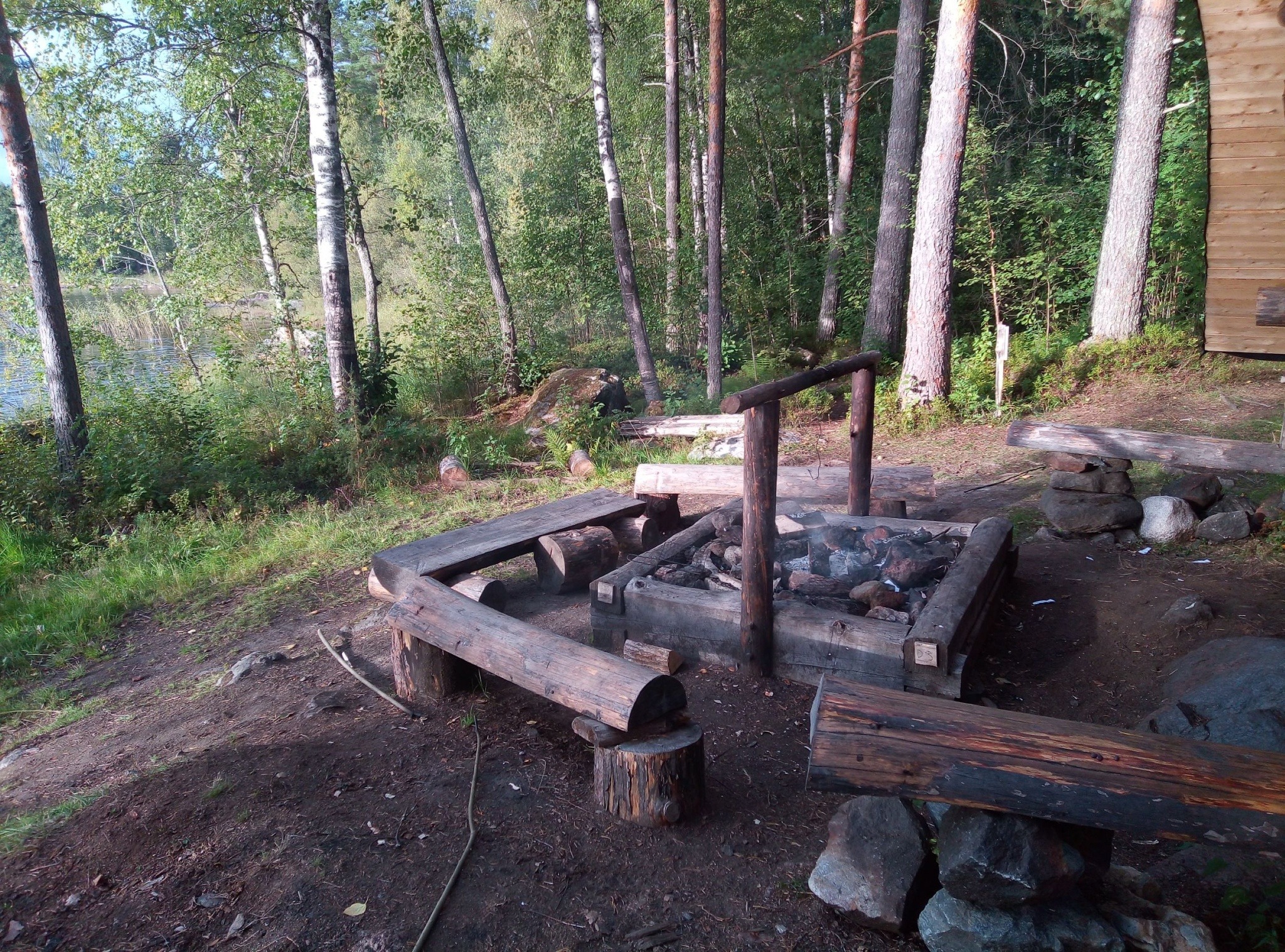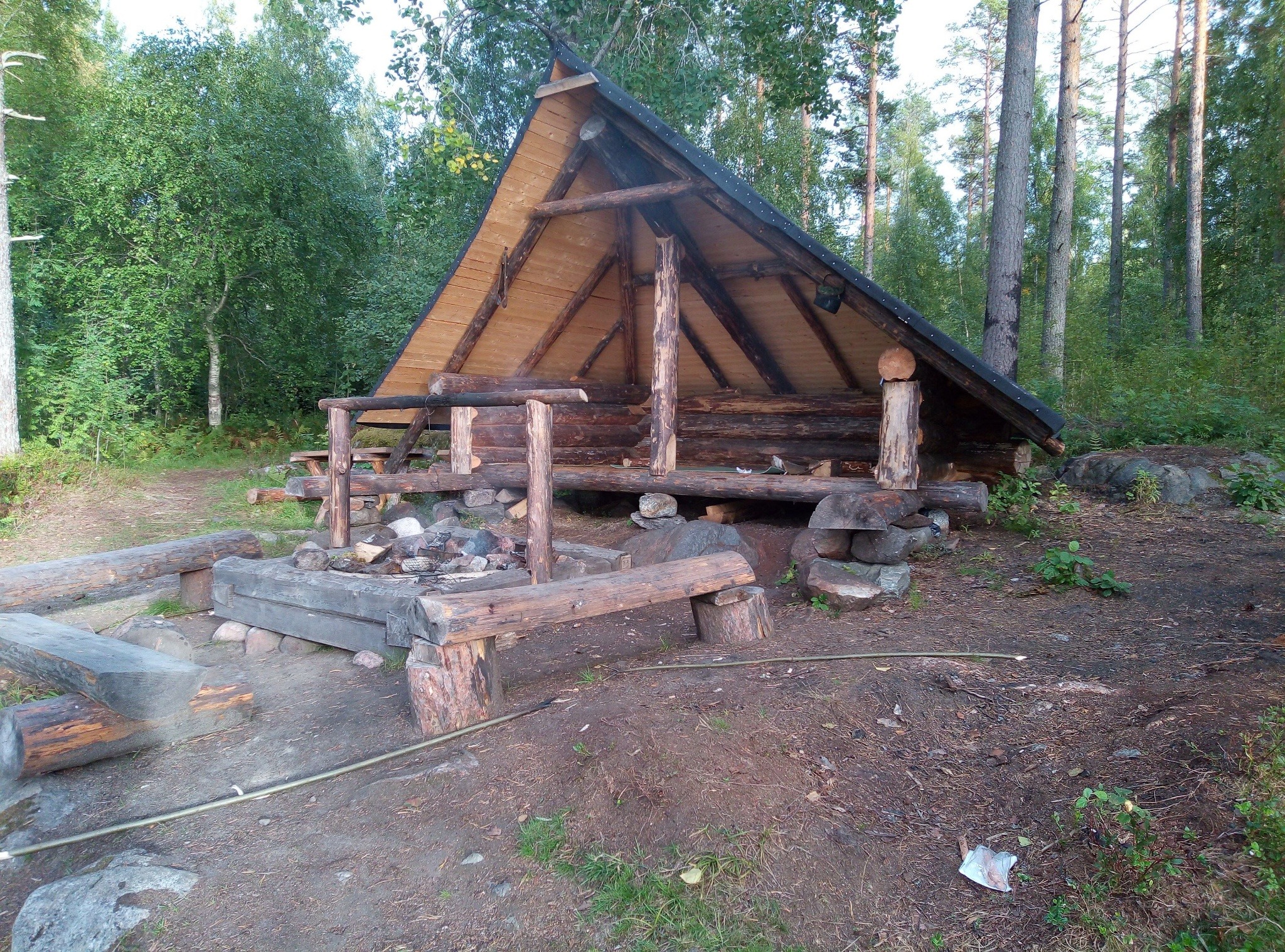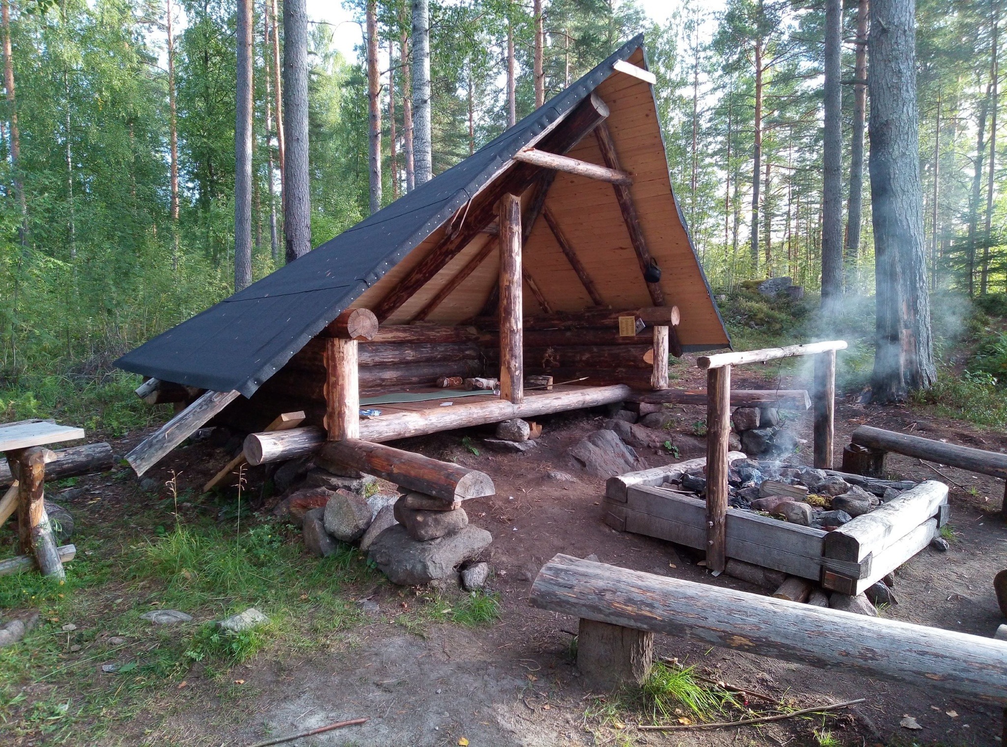 A laavuin Tilajoenlahti Bay in Vuohimäki. You can ski or skate between Poukkusalmi and Tervastuv in the winter.