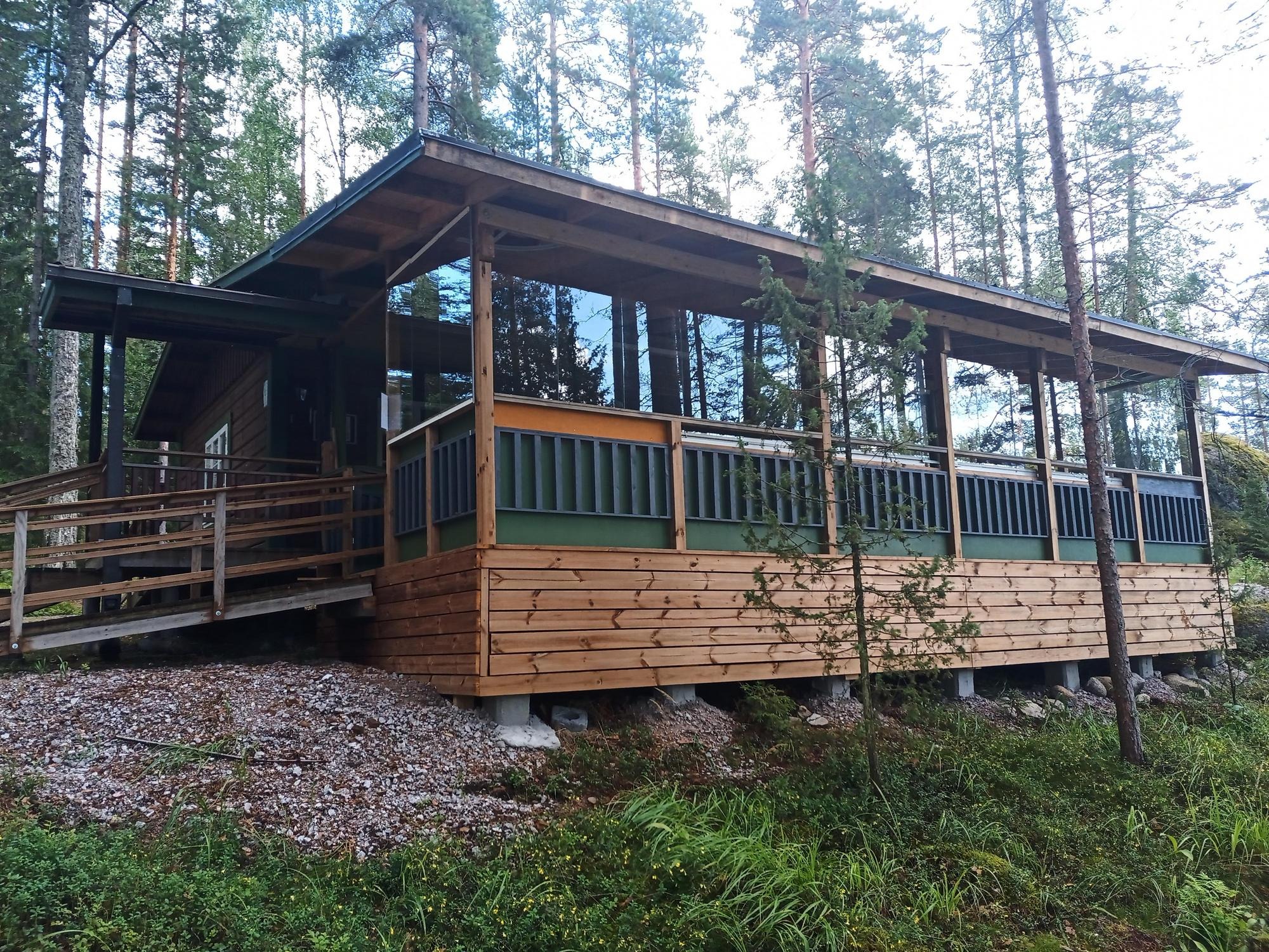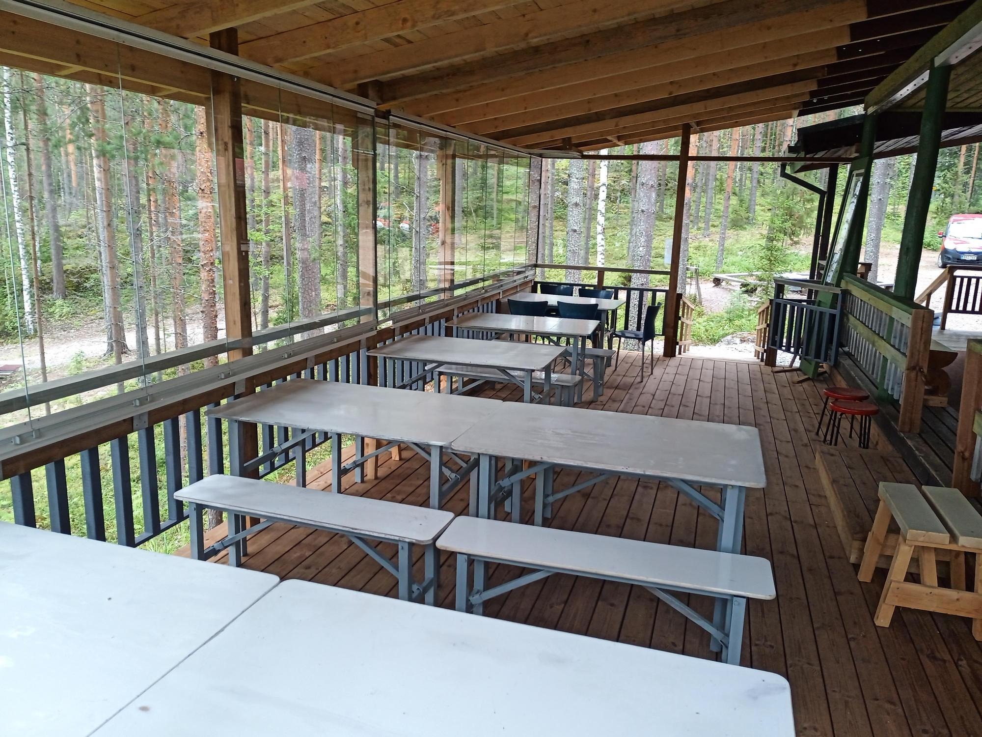 Mökit ja nuotiopaikat ovat kaikkien retkeilijöiden käytettävissä. Huomioithan, että kun mökissä tai saunassa on vieraita, älä häiritse siellä yöpyviä perheitä tai ryhmiä. Huoneessa on pitkä ja tukeva pöytä syömistä varten jne. /. Noin 10-15 henkilöä. Terassilla on runsaasti tilaa juhliin. Pöytäjärjestelystä riippuen jopa n. Sopii 40 hengelle. Tällä hetkellä olohuoneessa ja keittiössä on vuodesohva kahdelle hengelle. Saunaan mahtuu kaksi henkilöä (majoitusvajassa patjoineen). Palvelurakennukseen liittyy kaksi majoitusvajaa. Yhdessä huoneessa voi nukkua kaksi henkilöä ja kolme muuta.