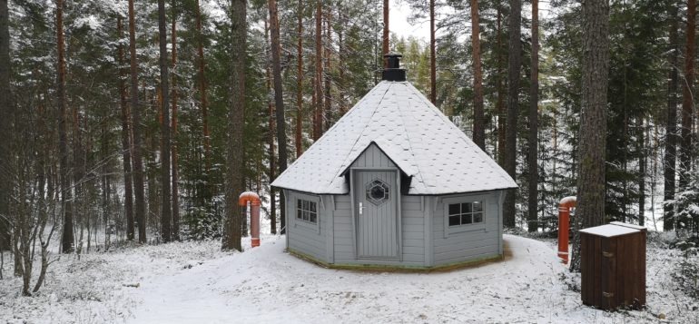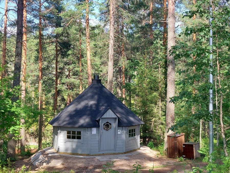 Hiukan kota kesällä. Kodan vieressä roska- ja tuhka-astia Kuva: Hanna Cederberg, CC BY-ND, Outdoors Kainuu. https://creativecommons.org/licenses/by-nd/4.0/deed.en