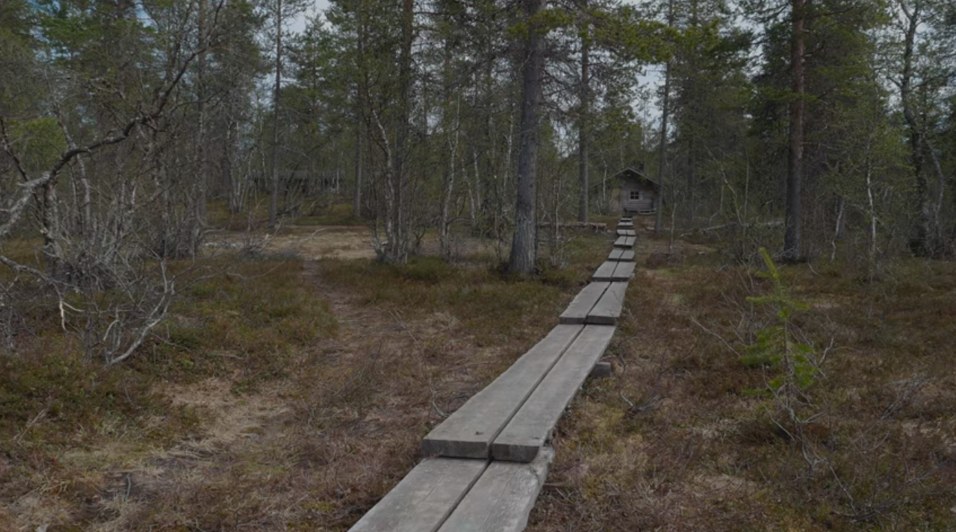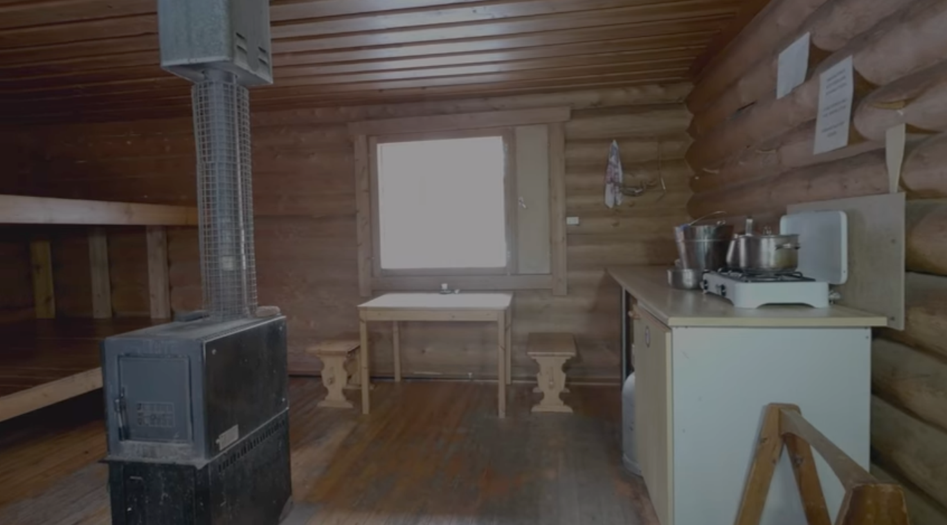 Ilmainen autiotupa Urho Kekkosen kansallispuistossa, Sodankylässä. Tätä puolta mökistä ei voi varata. Voit vain saapua paikalle, ja jos tilaa on, voit yöpyä siellä ilmaiseksi. Se on yhteydessä rakennuksen toiseen puoleen, josta voi varata vuodepaikkoja.