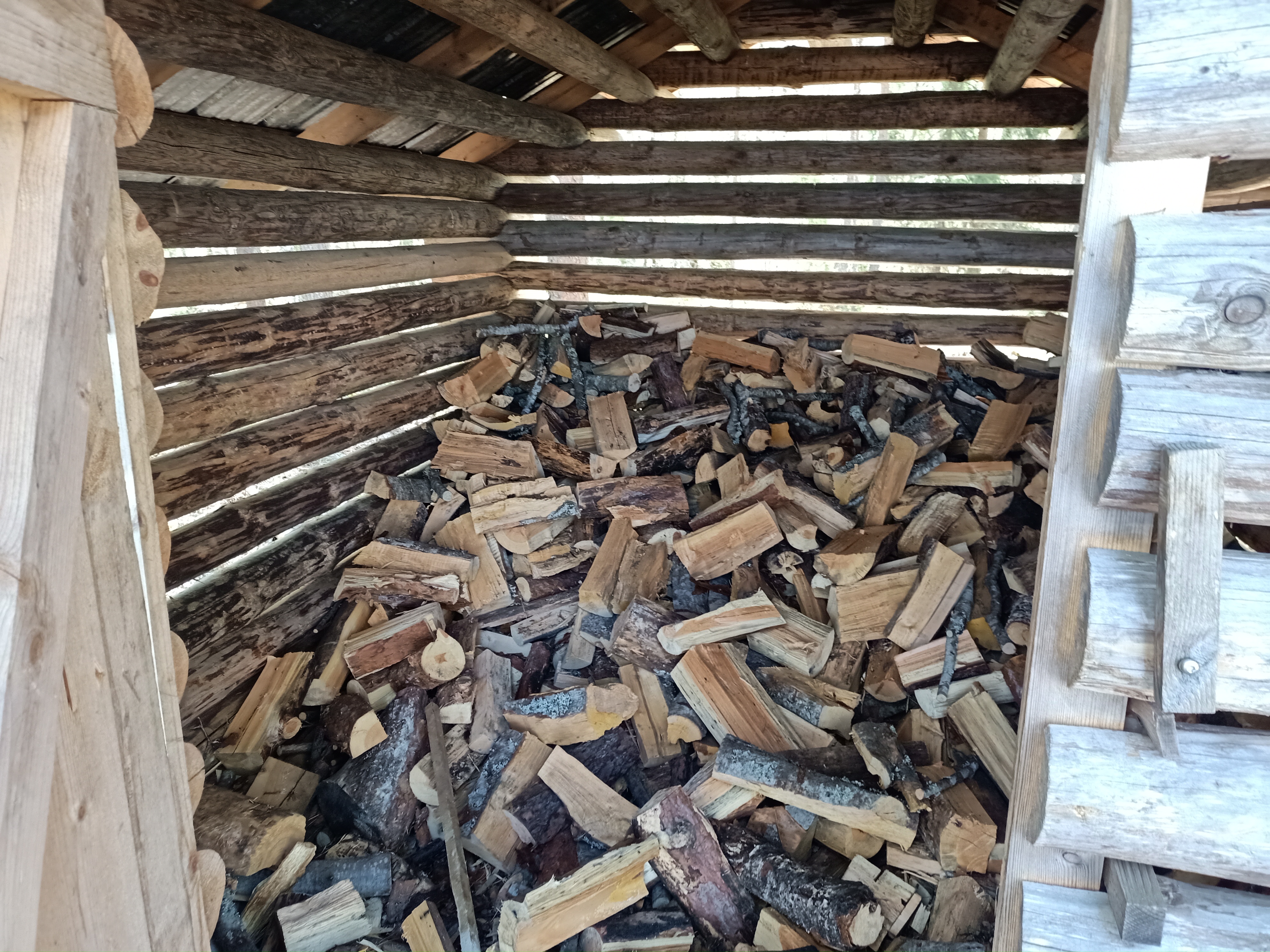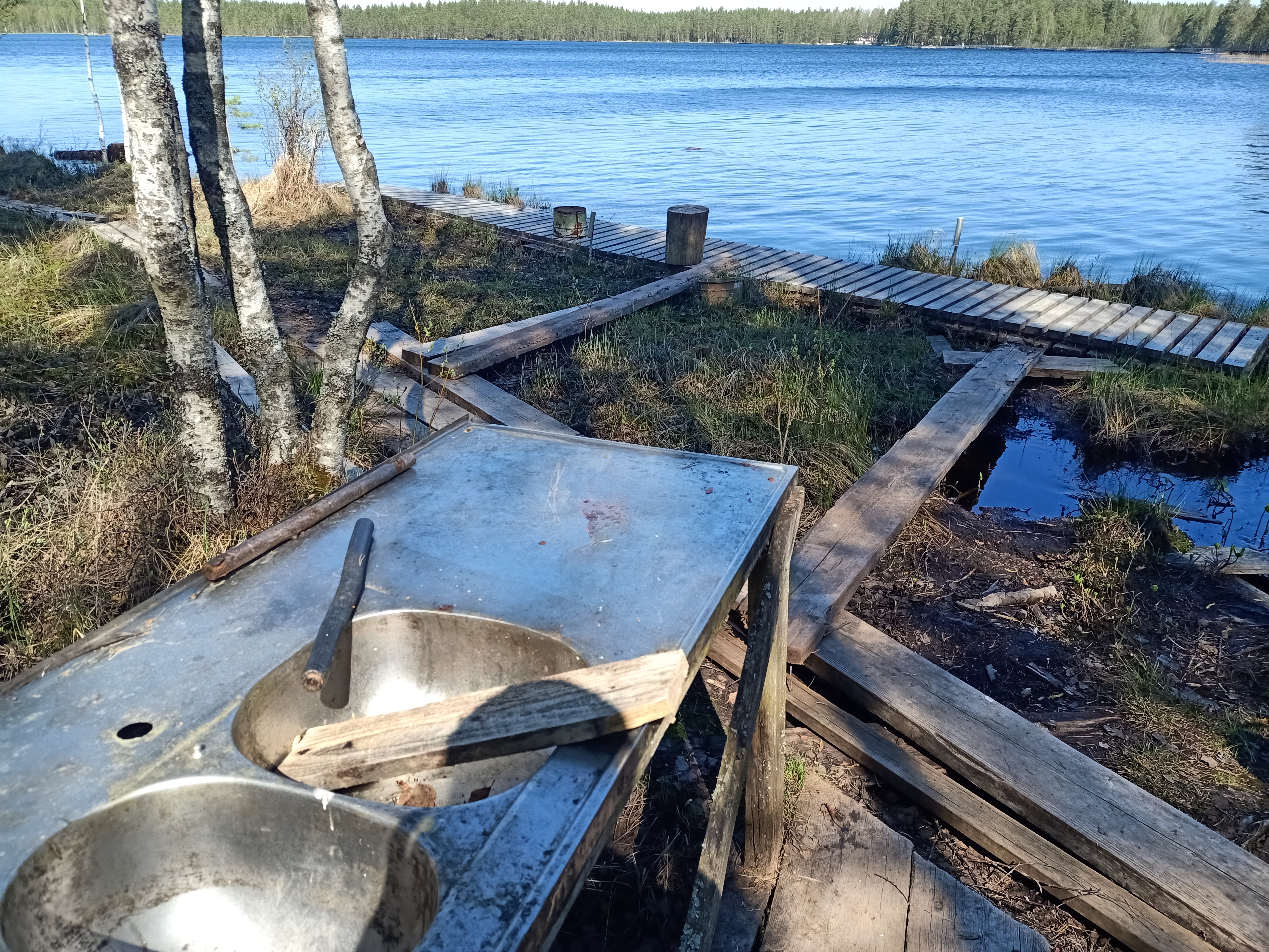 Vanhempi laavu järven rannalla. Siellä on paikka kalojen puhdistamiseen. Vaellusreitti on täälläkin hieman kulunut, mutta ei se haittaa. WC ja polttopuut lähellä.